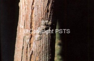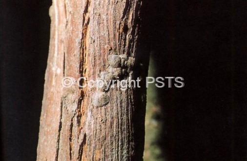 Femmine svernanti di Targionia vitis sotto il ritidoma del ceppo