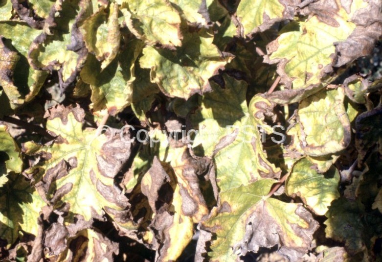 Sintomatologia:Colatura / cascola; Clorosi a macchie; Foglie di spessore più sottile; Germogli piccoli e gialli; Necrosi della lamina fogliare a partire dai margini; Presenza di frutti piccoli; Ritardi nel germogliamento;