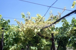 Foglie di vite con tipiche alterazioni per carenza di ferro.