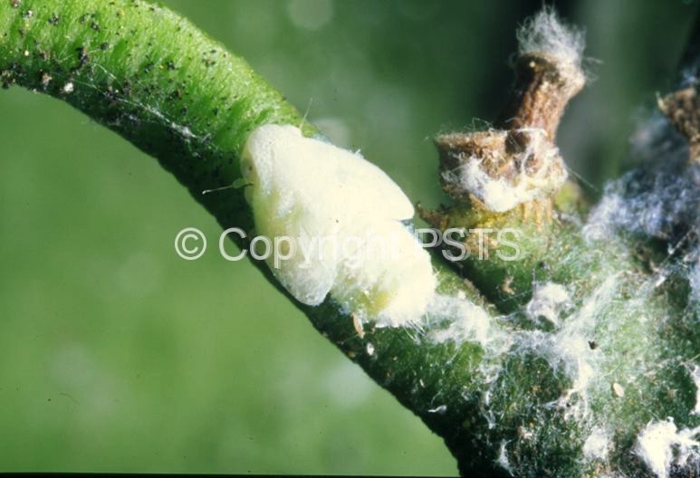 Ninfa di Metcalfa pruinosa su tralcio con secrezioni cerose